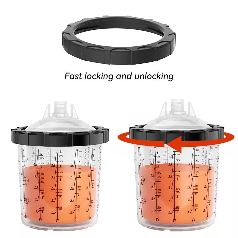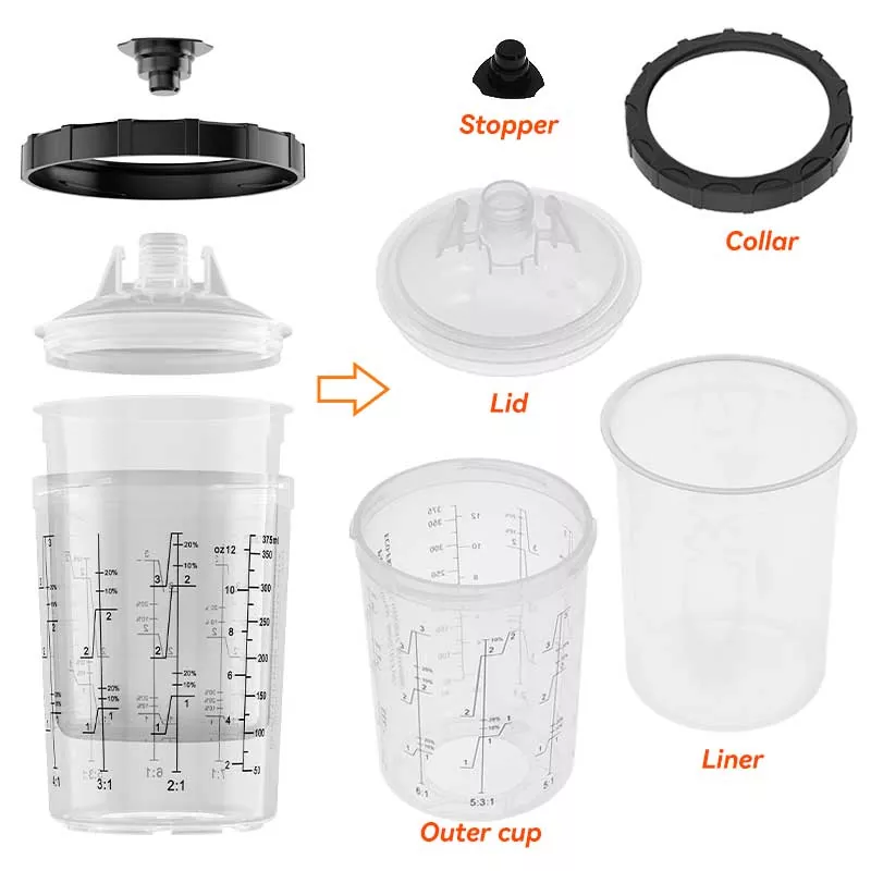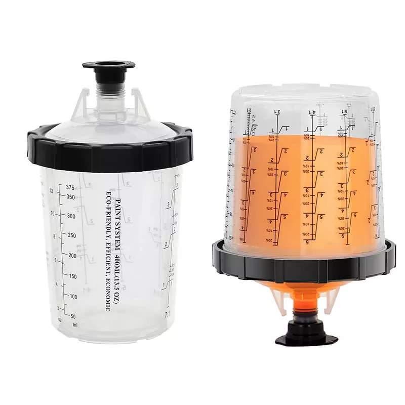Tento 400ml jednorázový kelímek na barvu 1.0 v podstatě nahrazuje tradiční kelímek s gravitačním podáváním, protože nejen šetří více barvy, ale také zlepšuje účinnost lakování. Speciálně díky skvělému designu automatického spirálového stahování vložky při lakování je barva plně využita; mezitím design s rychlým zamykáním a výměnou vložky zabraňuje mytí kelímku, což umožňuje provádět lakování efektivně a opakovaně. Máme adaptéry pro téměř všechny značky stříkacích pistolí na trhu, abychom uspokojili potřeby různých nadšenců stříkacích pistolí. Adaptér je vyroben z nerezové oceli, která je odolná vůči korozi laku a velmi odolná. Těsná kombinace vložky s víčkem zajišťuje, že systém kalíšku nevytéká barvu při lakování a podporuje dlouhodobé skladování nepoužité barvy, aby nedocházelo k plýtvání.