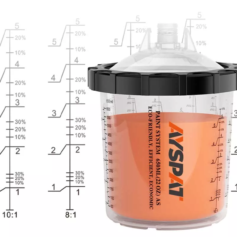 Každá součást kelímku stříkací pistole AYSPAT 400ML je vyrobena ze zcela nových materiálů PP a PE plastu. Disponujeme pokročilým výrobním vybavením a jedinečným procesem vstřikování, který umožňuje, aby každá součást spolupracovala a vytvořila dokonalý produkt.