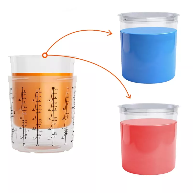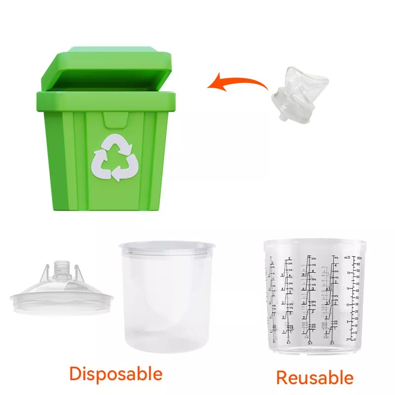 600ML Disposable Paint Cup System 1.0 je nejuniverzálnější standardní kelímek vhodný pro oblasti, kde se stříká 22 fl oz nebo méně materiálu. AYSPAT nabízí řadu systémů kelímků PPS s různými vzory, ze kterých si můžete vybrat, a lze je také přizpůsobit tak, aby vyhovovaly vašim potřebám:Vnější kelímek lze přizpůsobit logem vaší značky a stupnicí a lze přizpůsobit barvu a víko. Zavázali jsme se vyvíjet účinnější a pohodlnější systémy jednorázových sprejových nádob, které pomohou malířům dokončit jejich malířské práce profesionálně a efektivně.