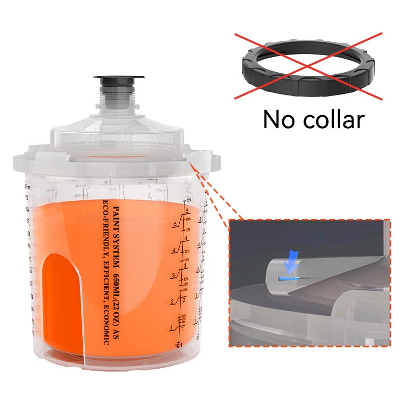 Kolík ,, který tvoří těsné spojení mezi šálkem a víkem, je již dlouho klíčovou součástí systémů jednorázového stříkacího poháru. Během rušných malířských sezení malíři často ztrácejí nebo poškozují límec, což brání správnému fungování jednorázového sprejového šálku a vytváří významné výzvy.