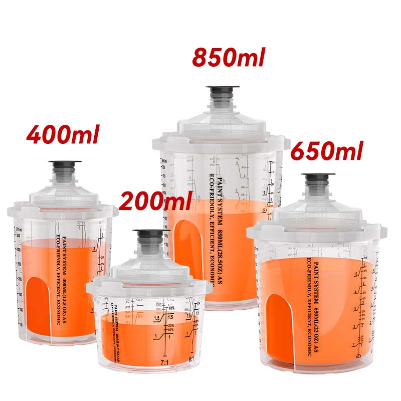 - Ays3.1jednorázový pohárje vyroben z materiálů PP a PE odolné vůči rozpouštědlem a odolných vůči nárazům. Podporuje širokou škálu povlaků, včetně latexových barv, barvy na bázi oleje a laku, což účinně eliminuje problémy s korozí běžně spojenými s tradičními sprejovými poháry.