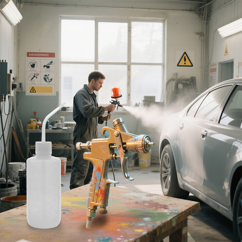 Hrnec pro mytí stříkací pistole používá jedinečnou zakřivenou trysku, která může proniknout hluboko do stříkací pistole a rychle propláchnout barvu a nečistoty z mezer uvnitř stříkací pistole. Hluboké čištění může účinně zabránit ucpávání způsobené sušenou barvou, zlepšením výkonu postřiku a prodloužením životnosti stříkací pistole.